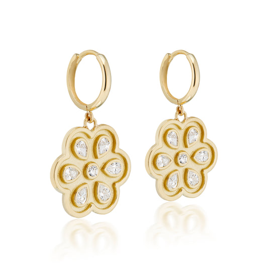 Topaz and Diamond Daisy Eyelet Drop Earrings